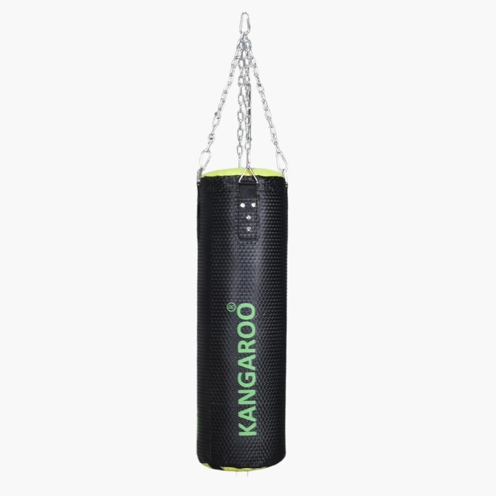 كيس ملاكمة من كانجرو – 85 سم / 16 كجم – مع سلسلة حديد 35 سم مع مشبك أمان فولاذي جاهز للتعليق وقابل لتعديل الوزن