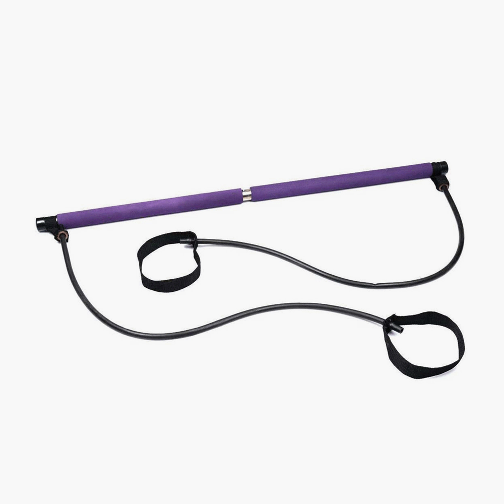 جهاز بيلاتيس المحمول هو عصا مقاومة لليوغا متعددة الاستخدامات مع حلقات للقدم. يتميز بقضيب معدني معزز مغطى بالفينيل، مثالي لمجموعة متنوعة من التمارين الفعالة.