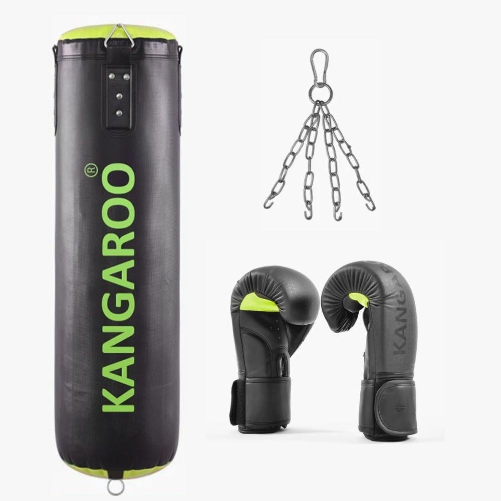 كيس ملاكمة من كانجرو – 85 سم / 16 كجم – مع قفاز ملاكمة أحترافي مع سلسلة حديد 35 سم مع مشبك أمان فولاذي جاهز للتعليق وقابل لتعديل الوزن