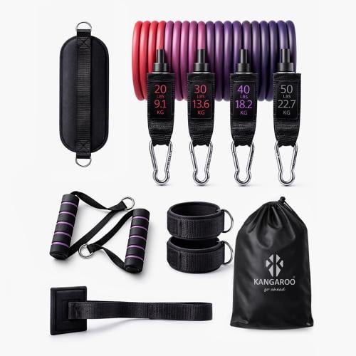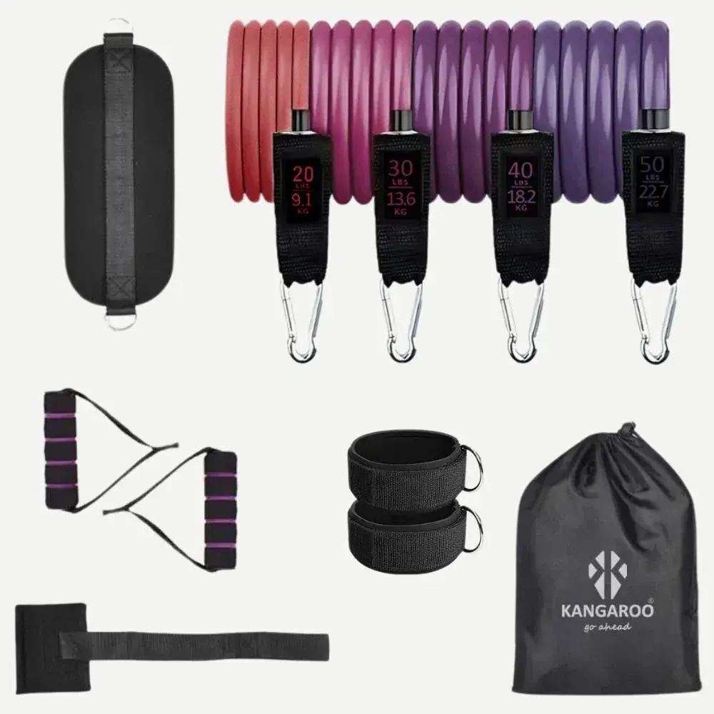 مجموعة حبال المقاومة الشاملة 4 مستويات شنطة كاملة 11 قطعة من كانجرو