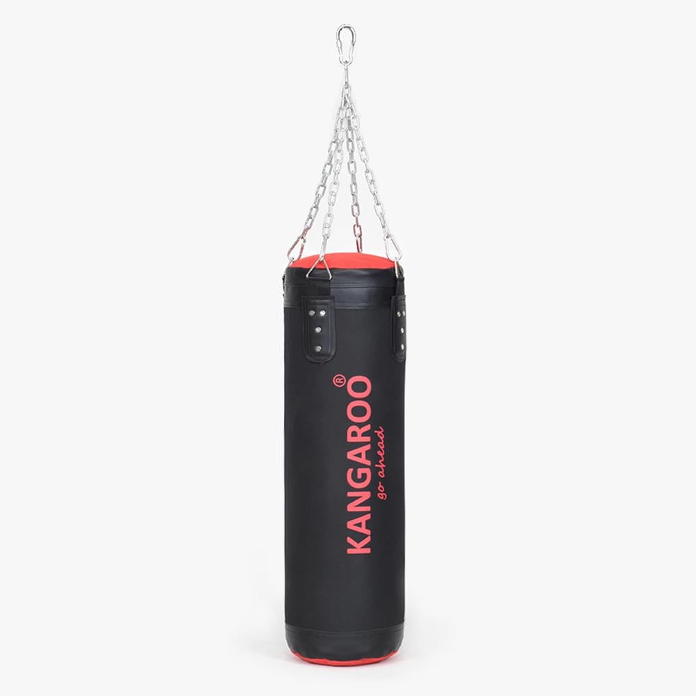كيس ملاكمة من كانجرو – 85 سم / 16 كجم – مع سلسلة حديد 35 سم مع مشبك أمان فولاذي جاهز للتعليق وقابل لتعديل الوزن